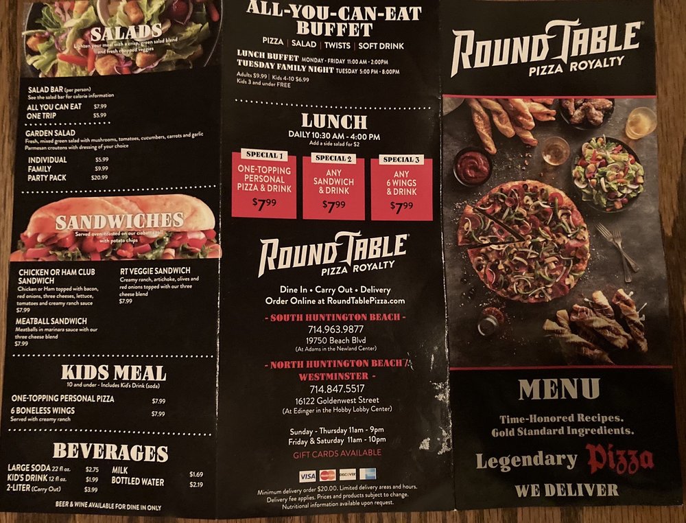 Beyond pizza, the menu features crispy chicken wings, perfect for spice enthusiasts, as well as fresh salads that provide a crisp counterpart to hearty dishes. The restaurant’s inviting ambiance paired with friendly staff enhances the dining experience, whether you choose to enjoy your meal inside or on the beach under the Californian sun. With customizable dipping sauces and beverages to complement every meal, Round Table Pizza - 19750 Beach Blvd guarantees satisfaction, making it a must-visit for locals and tourists alike.